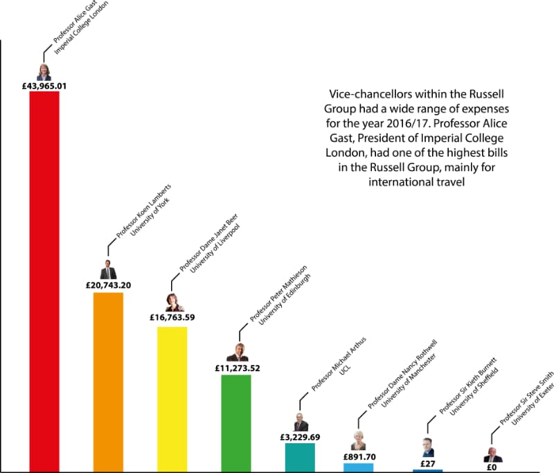 Data obtained from Freedom of Information requests show Professor Gast last year claimed nearly £44,000 in expenses, mainly for travel abroad.