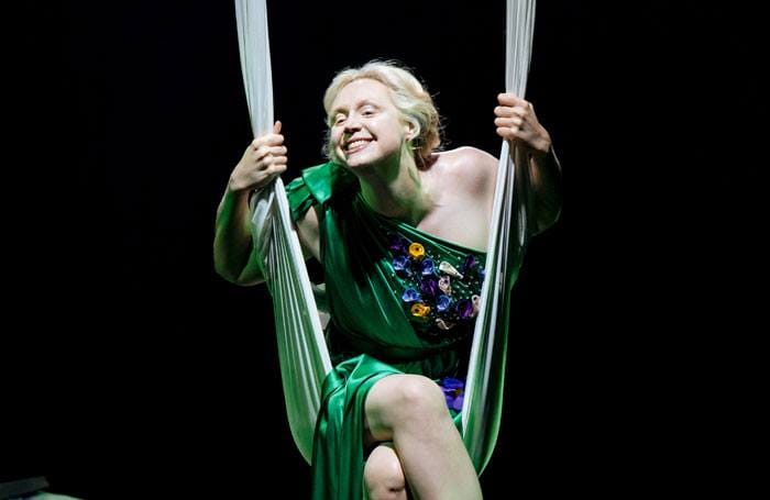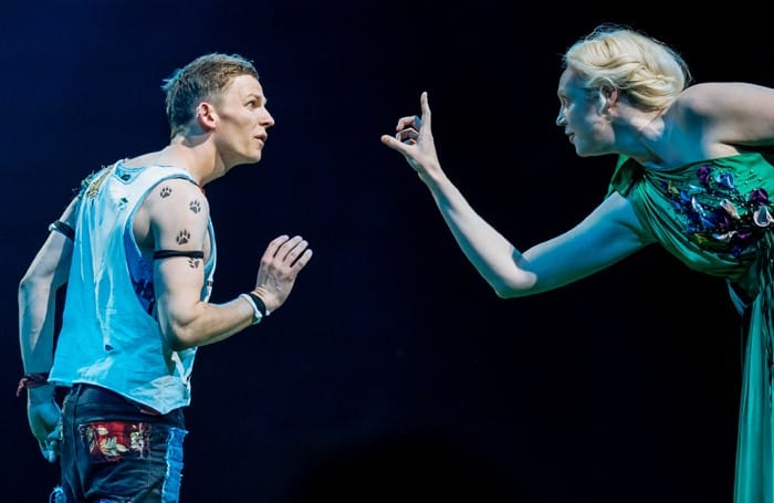 Some roles in the original play are swapped: it is Titania, the Fairy Queen, who uses the love-in-idleness flower to manipulate four young lovers through a series of misunderstandings, and Oberon, the Fairy King, who is enchanted into falling in love with a man turned into an ass. A cheeky way to re-examine the power balance in the relationship between their mortal counterparts, Theseus, Duke of Athens, and Hippolyta, leader of the subjugated matriarchal tribe of the Amazons. And, of course, an excuse to have a shirtless dance from Oliver Chris, and a lovely mischievous grin from Gwendoline Christie.