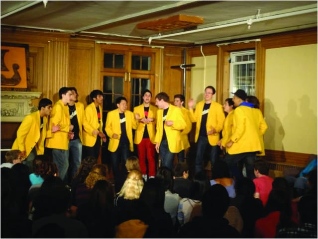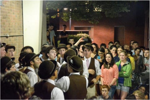 The next morning gave us the opportunity to see how Varsity is done properly; Syracuse, generally considered the NY state capital for college sport, was out in force to support their team, and considering that events like that occurred at every home game of the year, the difference in college spirit value was clear to see. Leaving yet another set of lovely hosts at Syracuse, we took the short (by comparison) drive to Rochester to meet our next hosts, the Yellowjackets. Competitors on hit US show, ‘The Sing Off’, the Yellowjackets are both very talented and very well known. However, it was clear to see that in essence our groups were very similar, which was a good indication to us that we were somehow doing it right! After a lovely free canteen dinner, we headed with the Yellowjackets to the venue (an ex-frat house) and shared the stage at their homecoming gig. Even though we had improved so much on the tour, it was clear that there was always more room for improvement, and the Yellowjackets showed us some of the ways to do this.
