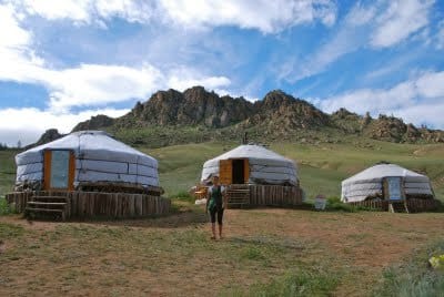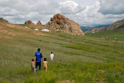 Terelj is located 60km away from Ulan Bator, the capital of Mongolia. The national park has smooth sloping valleys that climb up to become rocky peaks. This past July, the rains were plentiful. Grass carpeted the landscape, though not the soft type you’d find in your lawn. Rather the blades grew in little clumps with wiry roots that ran deep into the dry earth. The hardy vegetation provided an abundance of food for the horses, cows, sheep and camels that seemed to have free roam of the park. In sharp contrast to the green underfoot, a deep blue sky spread overhead with clouds so high they hardly seemed to move.