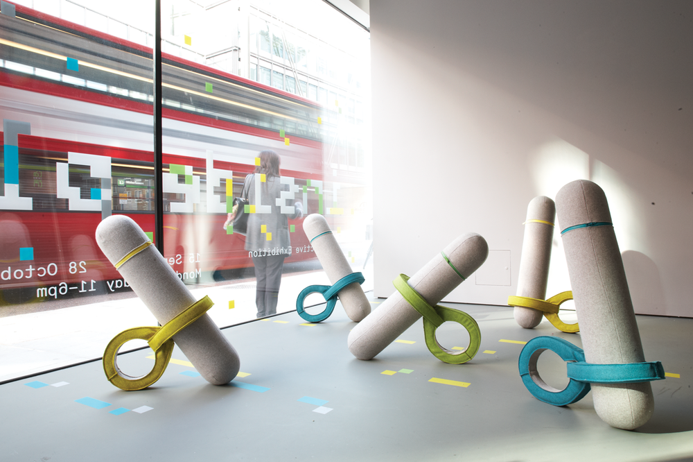 Bond is a co-founder of Physical Pixels, a company coupling technology and design to create installations that act like environments with which the user can play and interact. He immediately shows me part of a project called Dash Dot Dash, which aims to help autistic children communicate within a tactile and musical sphere. There are several off-white cylindrical objects in front of me and each produces a different musical note when tapped; in a large-scale installation, any number of these could be wirelessly connected to each other, allowing for a fluid and formless mode of communication. The project was developed in conjunction with researchers but Simon Bond himself has a surprising connection to the world of special education. Prior to taking the joint RCA – IC course in industrial design, Bond worked for eight years as a nurse in mental health.