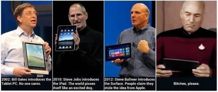 But it’s not like Microsoft never prepared for the death ofthe PC. In 2002 Bill Gates released the tablet PC thinking it would change the world and be the future, but it failed spectacularly. There’s lots of cited reasons for the failure, e.g. primitive software, but the real reason is that Microsoft just isn’t like their Cupertino rivals Apple, they’re not a proactive company, they’re reactive.