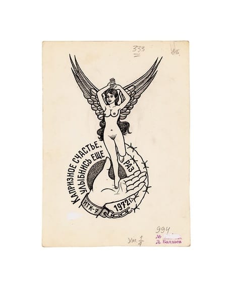 Tattooing within prison was illegal and severely punishable but on discovery of Daldaev’s project, the KGB decided to support him in hiswork. His drawings provided them with an invaluable criminal record of a prisoner’s life history; everything from previous crimes, birthplace, aspirations and even sexuality could be found out from their tattoos.