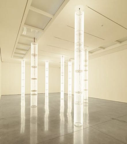 In the centre of a large room in the Hayward Gallery, a cylinder made up of hundreds of glass tubes hangs from the ceiling. Contained withineach tube are thousands of tiny LED lights, which flicker on and off, creating an endless series of hypnotising patterns. Explosions of light burst out, only to fade and be replaced by an image of flickering stars, which grow in intensity before returning to darkness. This cycle repeats again, and again, and again, but is never quite alike; we never see the same image twice. This mesmerising piece by American artist Leo Villareal opens the Hayward’s latest exhibition, aptly titled Light Show, which explores how artists use the medium of light to create incredible, powerful and mind-boggling artworks.