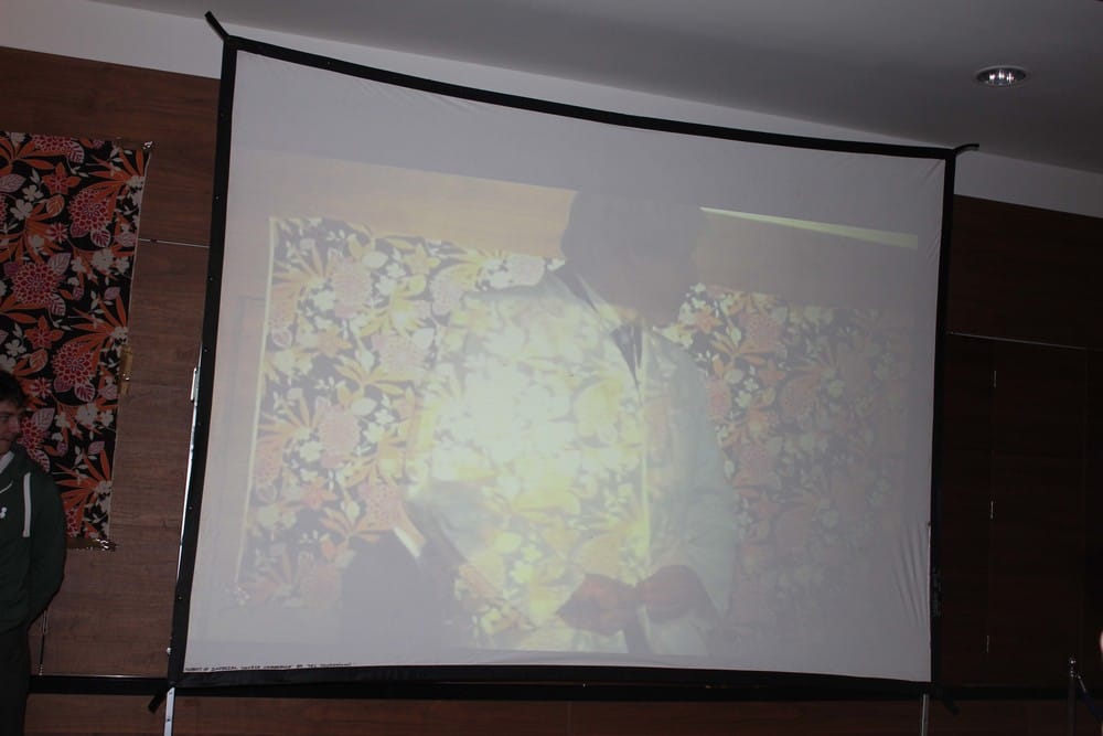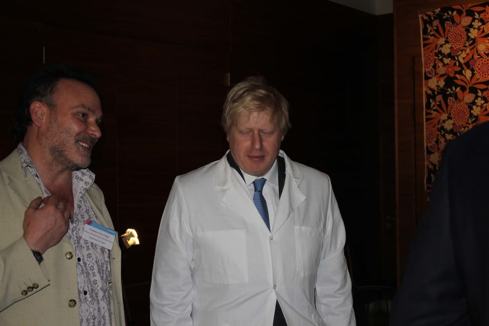 The Mayor was reportedly keen to try the “Harry Potter” style invisibility cloak and both he and David Willetts took turns to have a go. The cloak is a result of the group researching meta-materials. The Rector had already noted that evening that the ability to “disappear” may be a useful skill for politicians.