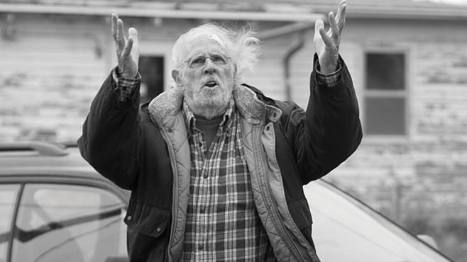 In Alexander Payne’s Nebraska, a black-and-white movie exploring the relationship between a father and son who embark on a road trip to collect a $1 million prize, Bruce Dern is “simply marvelous” as he “underplays without a trace of neurosis or mannerism”