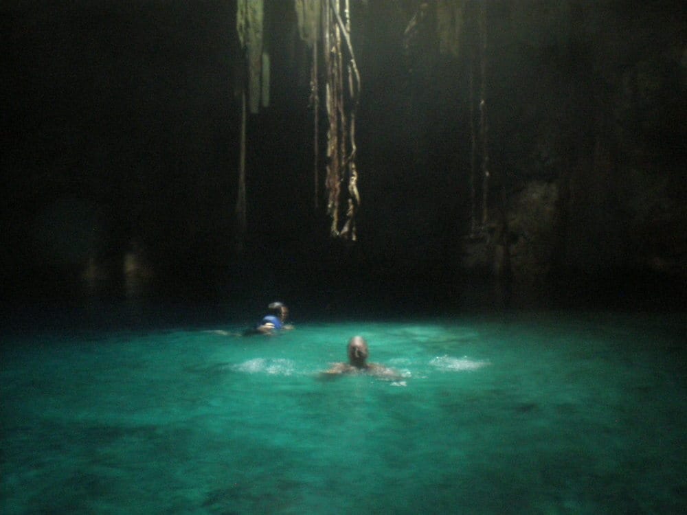 The cenotes themselves are deep underground and can be accessed either by slippery stone steps, or as in one case, a perilously flimsy step ladder. However, this inconvenience is definitely worth it. The water, which I should add must be shared with fish, is a surprisingly comfortable temperature, crystal clear and awesomely deep; diving opportunities are ample. Impressive stalactites hang down to nearly within reach and bats nest on the cave’s ceiling. It’s a swimming experience like no other and after three cenotes, although I still appeared the same age, I certainly felt more alive.