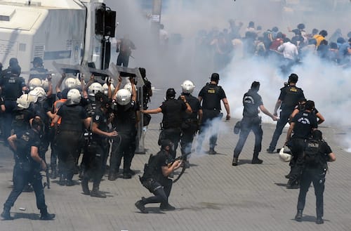 On the morning of Tuesday 11th June, Mayor of Istanbul, Hüseyin Avni Mutlu, wrote on Twitter that police would enter Taksim Square to remove barricades and banners from the area, with no intention of dispersing protesters. However, police began by shooting tear gas into the square and eventually into Gezi Park itself. Clashes intensified throughout the day. The following day, Erdoğan announced that Taksim Square would be cleared of all protesters within 24 hours.