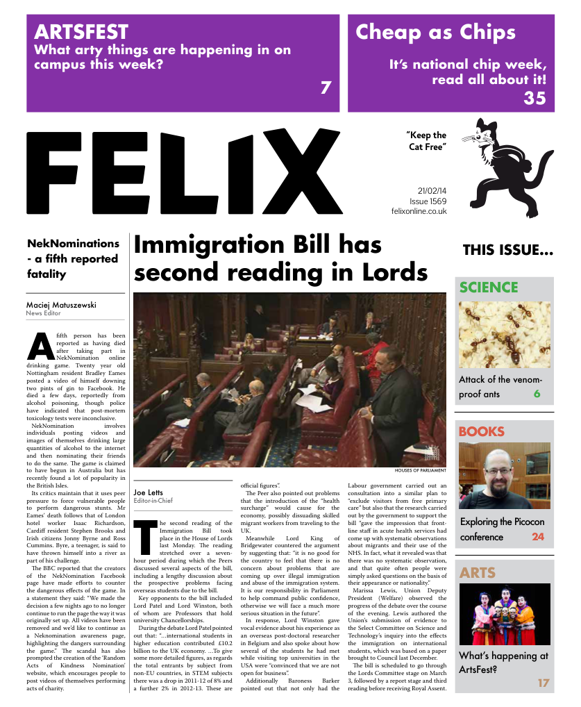 The second reading of the Immigration Bill took place in the House of Lords last Monday. The reading stretched over a seven-hour period during which the Peers discussed several aspects of the bill, including a lengthy discussion about the prospective problems facing overseas students due to the bill