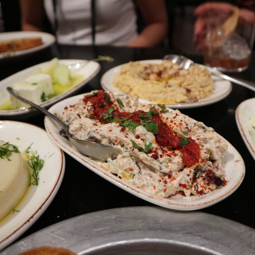 Raki is a strong Turkish, anise spirit, served to pair with the many plates of mezze and to accompany the hours of delightful laughter that followed. To start off, we took a sip of the clear, strong-smelling liquid from the specially-designed glasses. That was a powerful hit to my system. Then, following the traditions, we diluted the remaining with water and ice, looking on in wonderment as the alcohol turned opaque in contact with water. Salgam, a sour turnip juice that tasted rather like pickle juice, was handed around to cleanse the palette from raki. The mezze plates came one by one, and soon filled the table with more than plenty to share. Each one designed to match the accompanying raki.