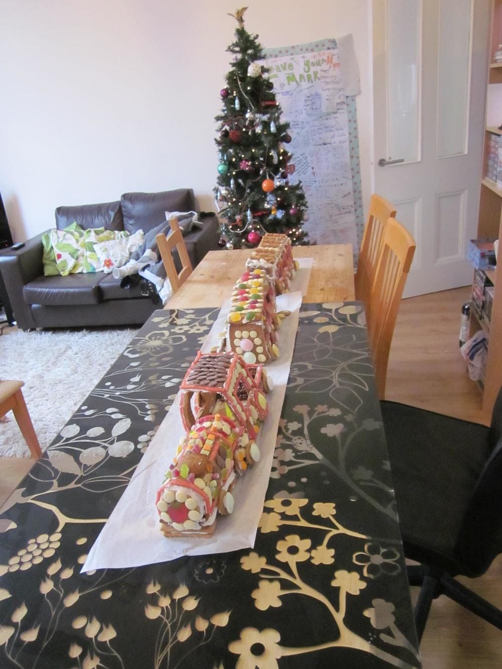 We weren’t ambitious. We built a cute little gingerbread house. It only took one batch of gingerbread and a few sweets for decoration, and it disappeared remarkably quickly. How things were to change!