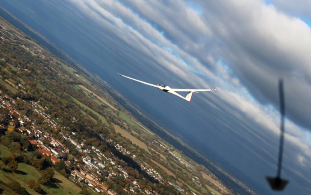 Due to the lack of an engine, gliders rely on rising air to keep them flying. During beautiful summer days, the sun heats up the ground and air just above it. The hot air then rises and eventually condenses into a fluffy cumulus cloud. The rising columns of air below these clouds are known as “thermals”. Gliders, as well as birds, can circle in this lift to gain altitude and stay in the air. However, in winter, thermals are scarce and gliders need a different way to stay in the air for any longer than 10 minutes – here is where the Southdowns ridge comes in.