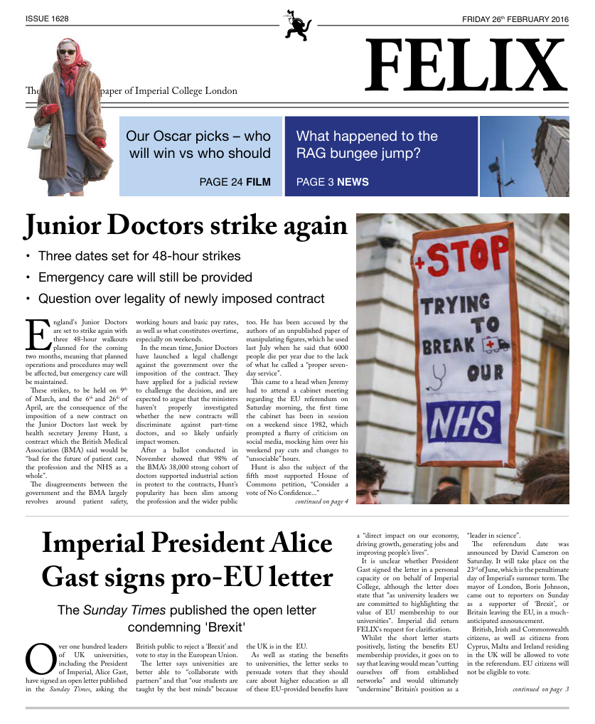 These strikes, to be held on 9th of March, and the 6th and 26th of April, are the consequence of the imposition of a new contract on the Junior Doctors last week by health secretary Jeremy Hunt, a contract which the British Medical Association (BMA) said would be “bad for the future of patient care, the profession and the NHS as a whole”.