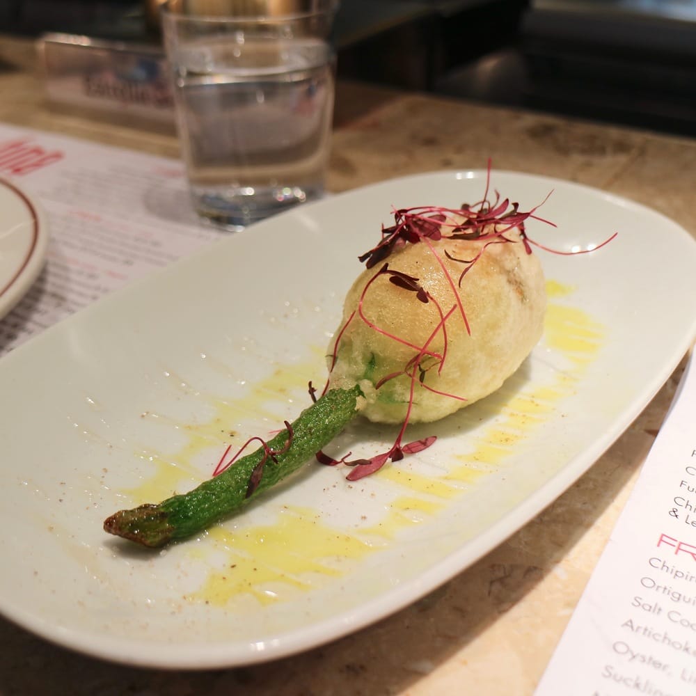 The arroz de marisco landed on the table as we were licking the prawn juices off our fingers. Reminiscent of the traditional paella, the rice was like a mountain of gold nuggets with mussels, clams and squid studded amongst it. The rice exploded with the essence of the sea. The stuffed courgette flower was a bit of a controversial dish between us. The flower, with the petals and the stalk, was the length of my hand, stuffed with goat’s cheese and lightly fried. It was almost like a dessert. The stalk was slightly sweet, the creamy, distinct flavours of the goat’s cheese cut through, assisted by a drizzle of honey. If you love goat’s cheese, you will fall in love with this dish.
