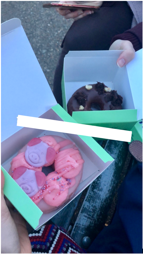 Not fazed by the shortcomings of the bubble waffle, the last trip was to a donut store in Soho called Doughnut Time. The size of the shop was tiny; basically a stand on the street (the only option was to get takeaway doughnuts, no place to eat-in) and we didn’t really know what to expect, although a queue was present and growing (a queue for any kind of food is always good, right?) As we got nearer, our first glance at the display made all our doubts disappear. From Percy Pig to Oreo to M&M donuts, every donut had a ‘theme’, both aesthetics and flavour wise. The Percy Pig donut was pale, with pink frosting and of course a couple Percy Pigs on top, while the Oreo one was made of black dough and was encrusted with broken Oreo chunks. There was even filled doughnuts, such as the Kinder Bueno doughnut filled with Nutella and topped with, of course, Kinder Bueno. Looking at the assortment, we were extremely impressed – not only did all the options look mouth-watering, but there were multiple (!) vegan options to choose from, such as Red Velvet! Although the price was £4 (for a doughnut?!), the flavour did not disappoint. The dough itself was pretty classic, but the special toppings really made it a delicious treat. The amount of frosting and icing on top was also very generous – we definitely needed a LOT of water after to deal with the sugar overload. Worth the £4? Not on a regular basis, but definitely worth a try at least once or twice to test out some cool flavours.