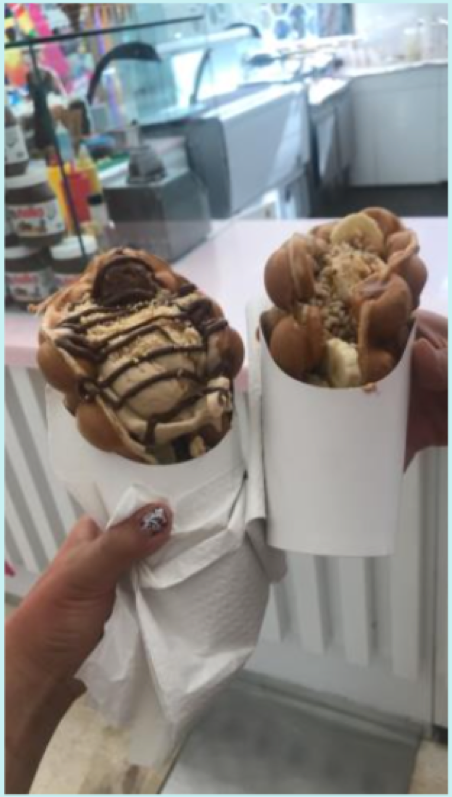 After how successful our first Westfield trip was, we had high expectations for our next dessert adventure, and naturally we had to hit up Bubble on Waffle, one of the most Instagrammed dessert places in London – but was it going to live up to the bar set by Naked Dough? Though we didn’t have as many flavours to choose from, we still had quite the predicament because who could really choose between a heavenly hazelnut Ferrero Rocher, strawberry shortcake goodness and a blissful banana split? Also, I mean, who could resist the combination of a hot waffle with the cooling ice cream centre? At roughly £7 per waffle, this was fairly expensive, but we were hoping it would be worth it. Unfortunately, the taste and practicality did not match the waffles’ looks; the waffle was soggy and began falling apart after a few minutes, and the ice-cream didn’t quite taste of the flavour it was meant to be. All in all, a bit bland really, but at least we got some pretty cool photos out of it – you win some, you lose some, eh?