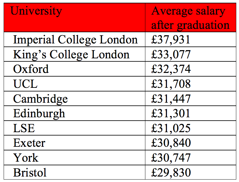 Imperial Graduates top University earnings table