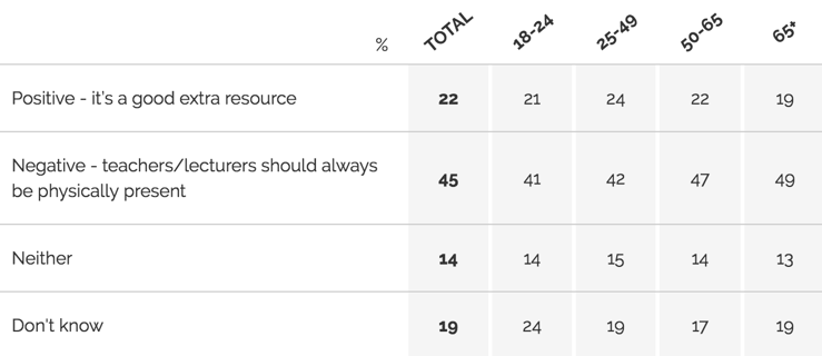 Not everyone is so sanguine about the technology. A YouGov survey found that 45% of respondents thought hologram lectures were a bad idea and that lecturers should always be physically present. Only 22% thought it was a beneficial resource.