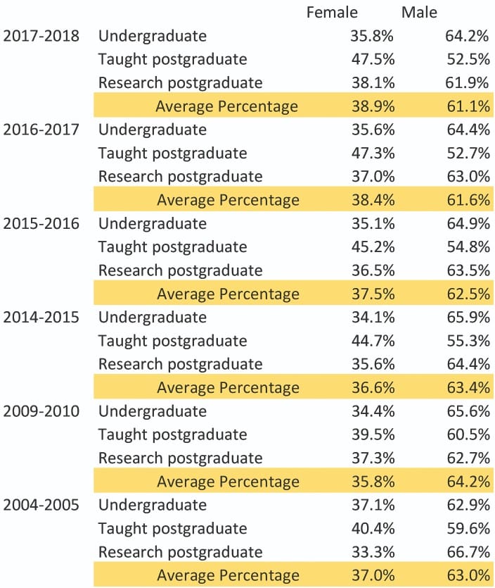 20 years ago, there were 5% of the professors at Imperial were women. That rose to 15% in 2009. Since 2009, it’s only increased by 1%, so it’s going a step in the right direction but the pace of change is extremely, extremely slow.