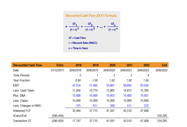 Unlevered FCF = EBIT (Earnings before Interest & Taxes)*(1-Tax Rate) + Depreciation & Amortisation expense – Capital Expenditure – Increase in Non-Cash Working Capital (NWC)