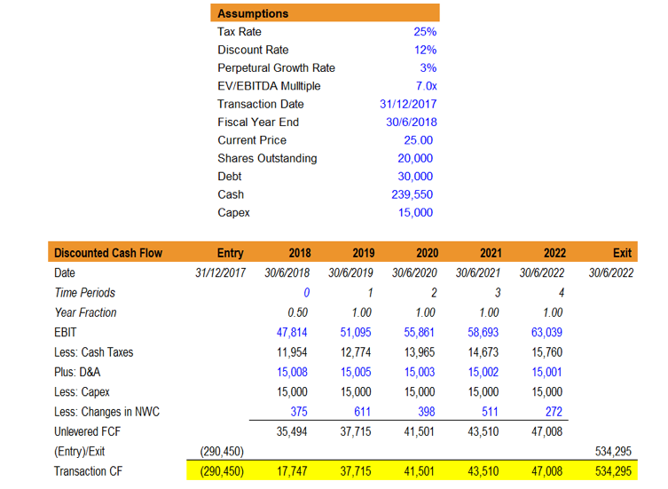 Using the FCFF projections listed under the Transaction CF: