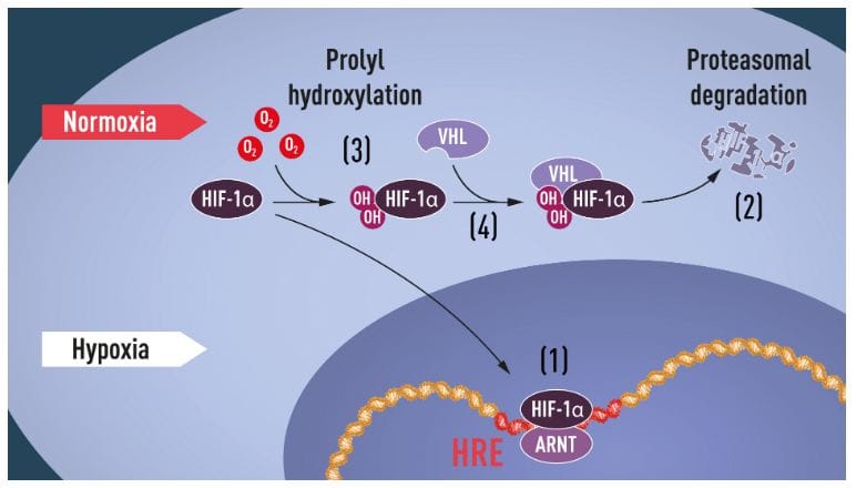 Examples of adaptive processes that are controlled by oxygen sensing include production of red blood cells (erythropoiesis) and formation of new blood vessels, fine-tuning of the immune system and fetal development. Equally important, oxygen is central to many diseases, including cancer where, the oxygen-regulated machinery is used to initiate angiogenesis (the formation of new blood vessels) and alter metabolism to help cancer cells replicate.