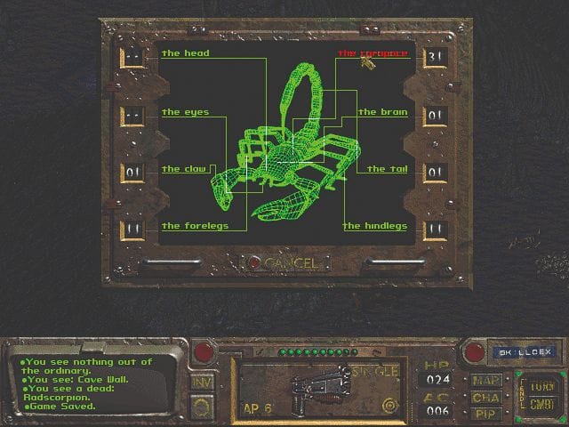 This was the first game to be produced by Interplay using the G.U.R.P.S role-playing system (originally developed in 1986) which heavily featured turn-based battle system aiming to unify the “rules” of RPGs. Magazines at the time of release such as NEXT Generation compared Fallout to other turn-based games, such as X-COM, while stating that: