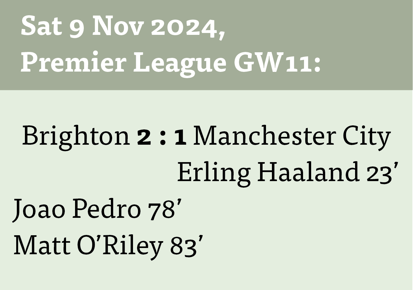 - Winning ground duels: Despite playing only 45 minutes, he won more ground duels than anyone else on the pitch. His physicality allowed Brighton to compete effectively in central areas. With an injured Rodri, who I have written about too much in the Sports section of this newspaper, this was even easier.