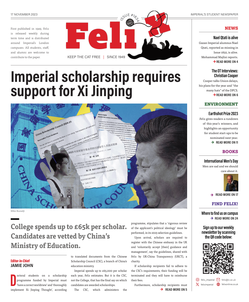 Doctoral students on a scholarship programme funded by Imperial must ‘have a correct worldview’ and ‘thoroughly implement Xi Jinping Thought’, according to translated documents from the Chinese Scholarship Council (CSC), a branch of China’s education ministry.