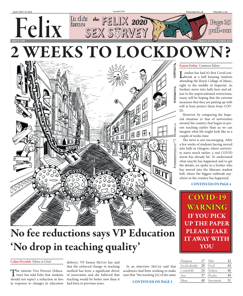 Many are surprised by the timing of the decision, especially given Imperial’s specifi c context. According to the most recent Times Good University Guide, Imperial ranks 5th lowest in the country for social inclusion, with a particularly low percentage of state-school-educated students. The introduction of the fee puts Imperial squarely in the minority of Russell Group institutions – although such fees are more common in London. The open letter also stresses that the deci-sion is “important to consider in light of the recent work by the college to improve equality, specifically in response to the #BlackLivesMatter movement”, noting the “co-correlation of socioeconomic class and ethnicity, and associated disadvantage".