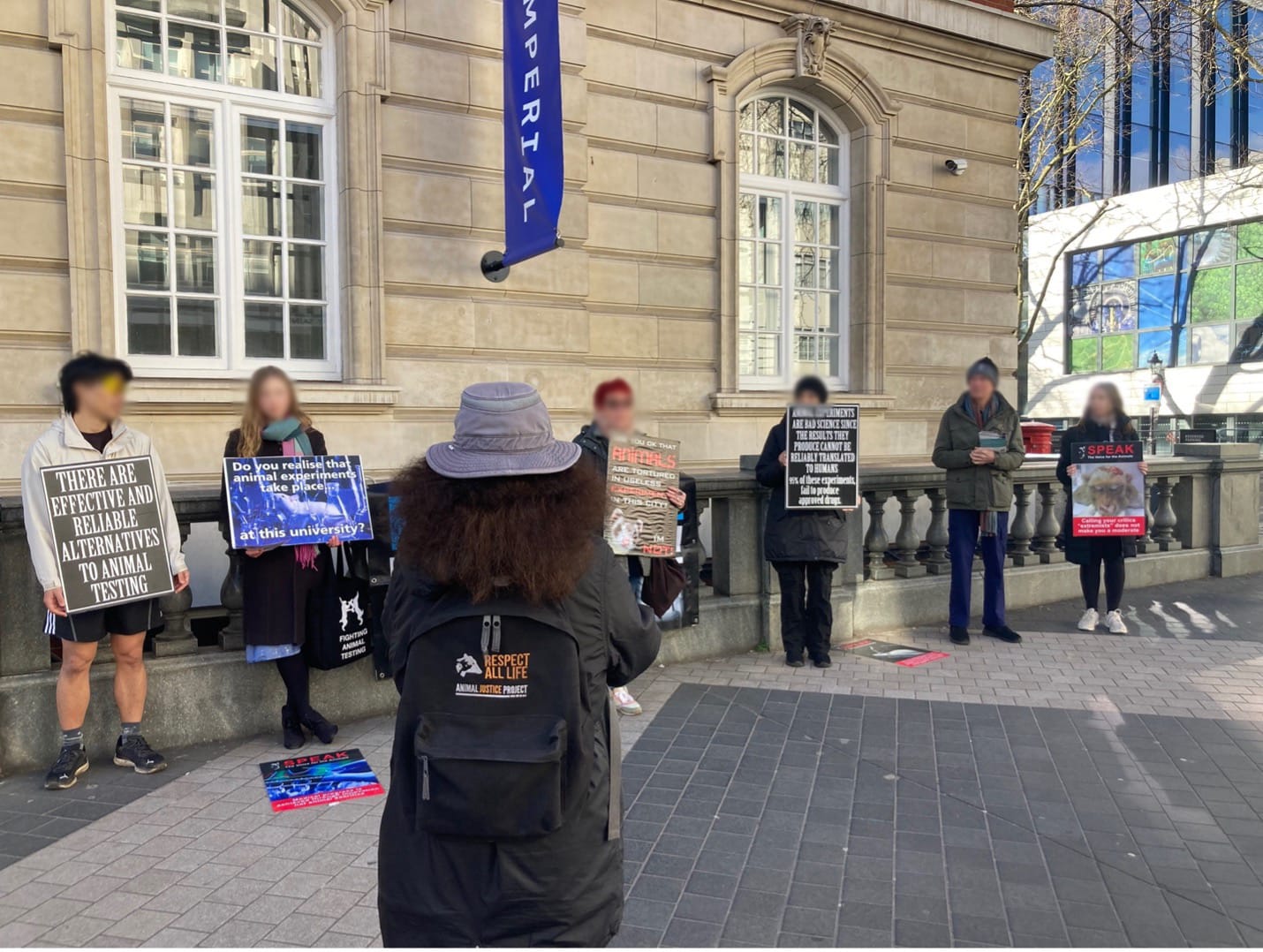 The protest was organised by London Animal Rights Advocacy, a small grassroots organisation with no link to Imperial students or staff. Kyra Shannon, one of the protesters, explained that they aim to raise awareness of the animal research happening at Imperial and to promote alternatives to vivisection, such as going cruelty-free.