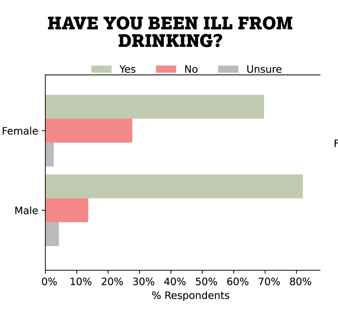 This survey showed that not all of us have the same definition of being ill from drinking. Five respondents said they had never been ill from drinking, but also reported that to have “blacked out” – it should be made clear that blacking out is indeed dangerous.