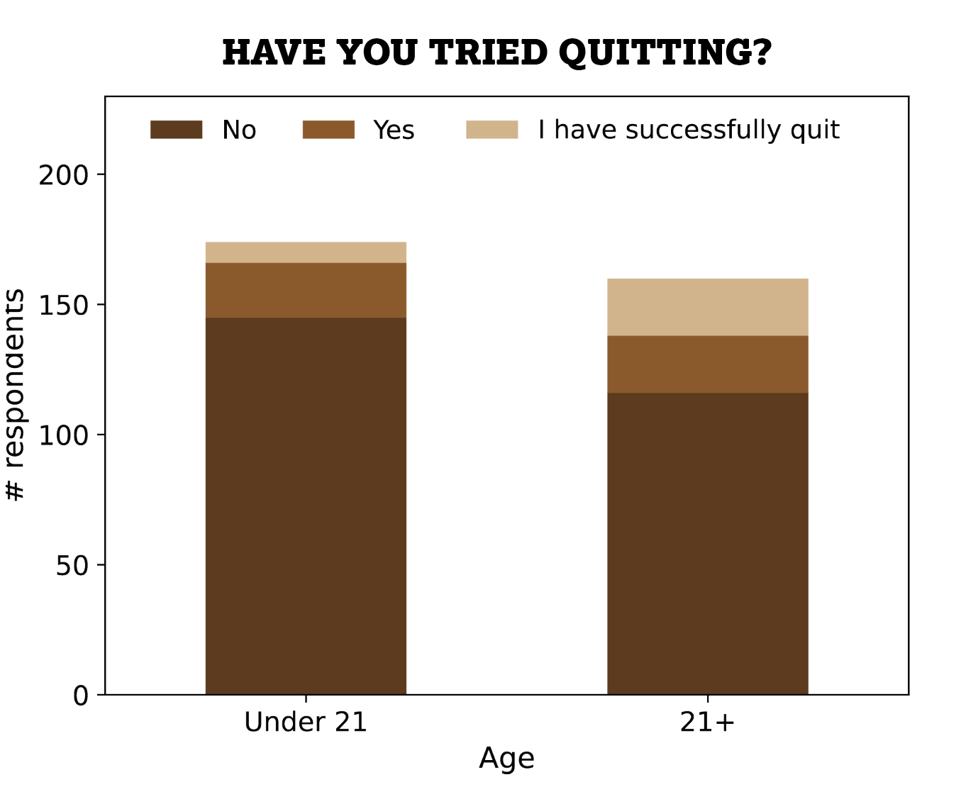 Most smokers (77%) have not tried quitting, but the share of successful quitters is higher in over-21s – with age comes wisdom. Only a third of smokers have confessed their vice to their doctor.