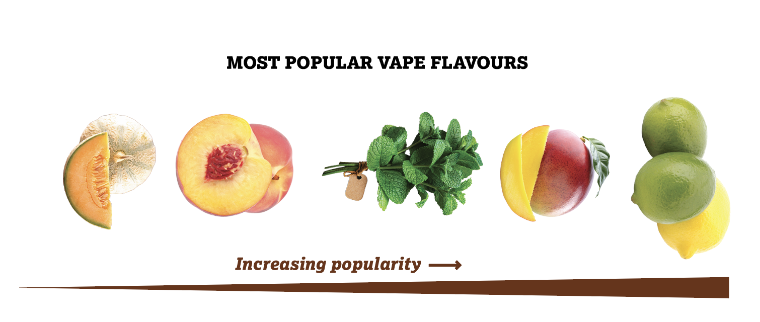 Ordered by decreasing popularity, students’ favourite vape flavour were lemon/lime, mango, mint/menthol, peach, and melon. “Not sure” was tied with mango, and “other fruit” came before mint/menthol. Non-fruit flavours like Cola didn’t fare very well. The most popular vape brands (not shown) were Crystal, Elf Bar and Lost Mary.