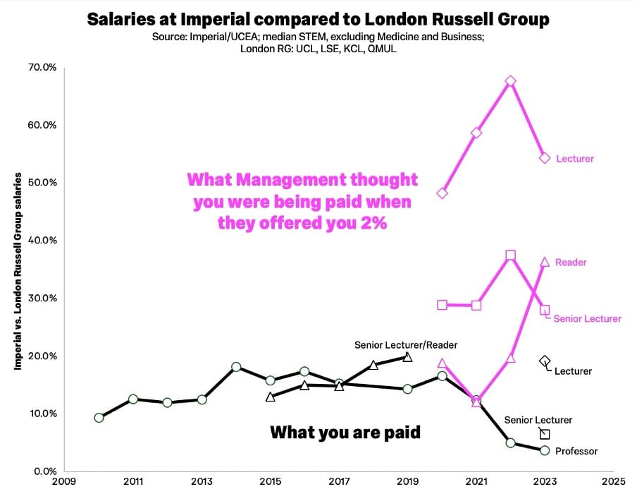 “Imperial would not be happy if it sat in the middle of the London Russell Group in terms of performance,” Professor Tom Pike, the Vice-President of Imperial College UCU, told Felix. He questioned the discrepancy between the university’s objectives for pay and performance, noting that universities like UCL had schemes allowing higher salary increases than those resulting from national bargaining settlements.