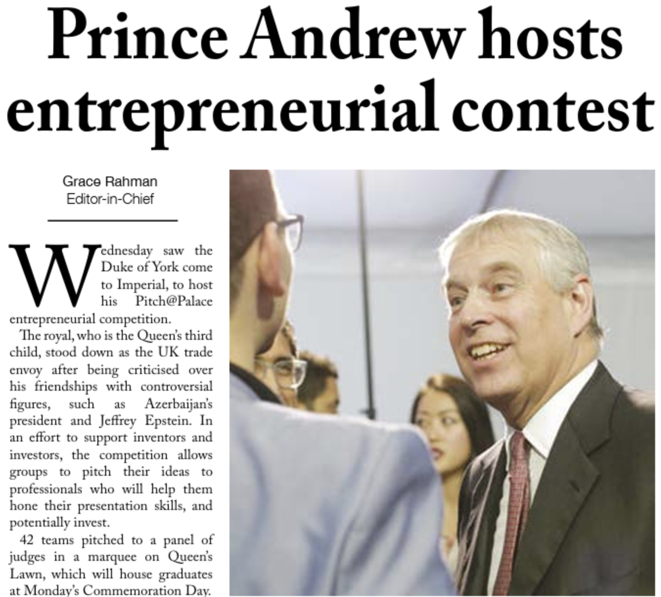 The opinion piece was about the Prince visiting Imperial for an entrepreneurial competition, which was featured as one of two lead stories in the previous week's edition, which, I now realise as I write this, is quite similar to our Ukraine feature last week, and The King's visit to Imperial marking the anniversary of the Ukraine war this week. Very much a case of synchronicity.