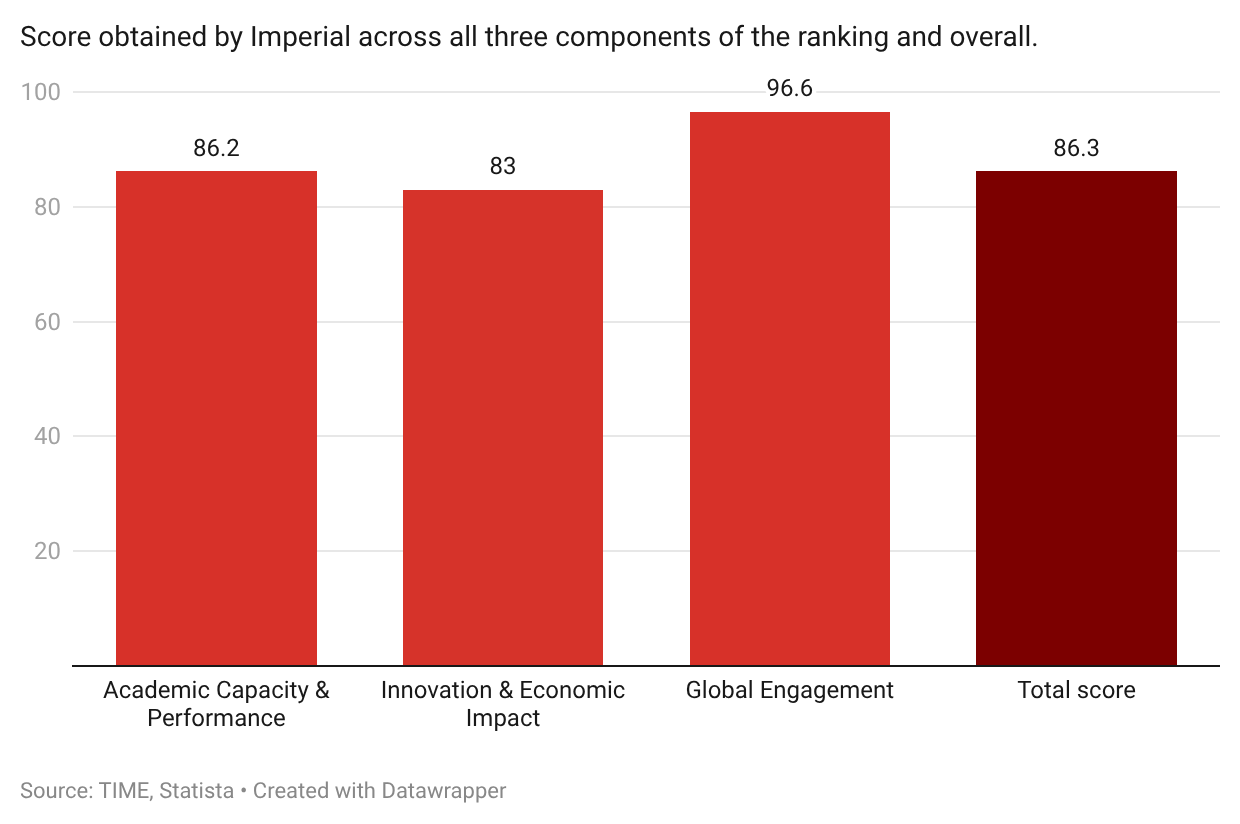 Imperial’s “Global Engagement” score was the third highest of any institution on the ranking, only behind the British universities of UCL and St Andrews. However, the College was given the second-worst “Innovation & Economic Impact” score within the top 10.