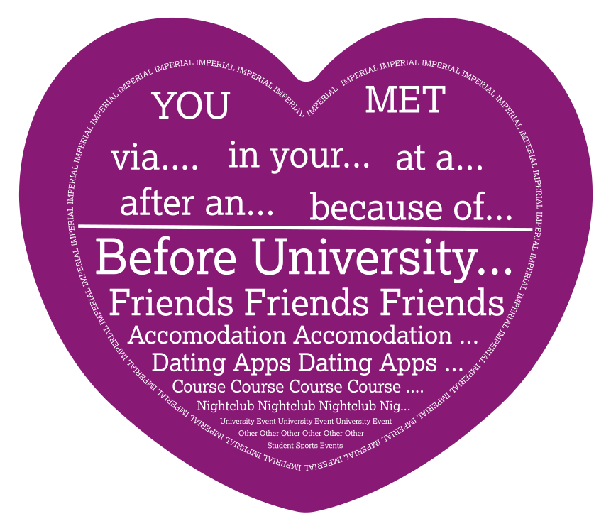 Interestingly enough, the majority of students met their partner before they even entered university. Hence, the most common place to meet a potential partner is via the second-place answer: via friends (34%). Thanks to inter-sex accommodations and the digital age, accommodation (23%) and dating apps (19%) follow suit.