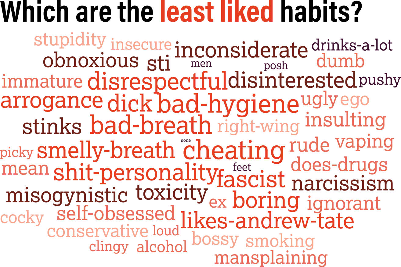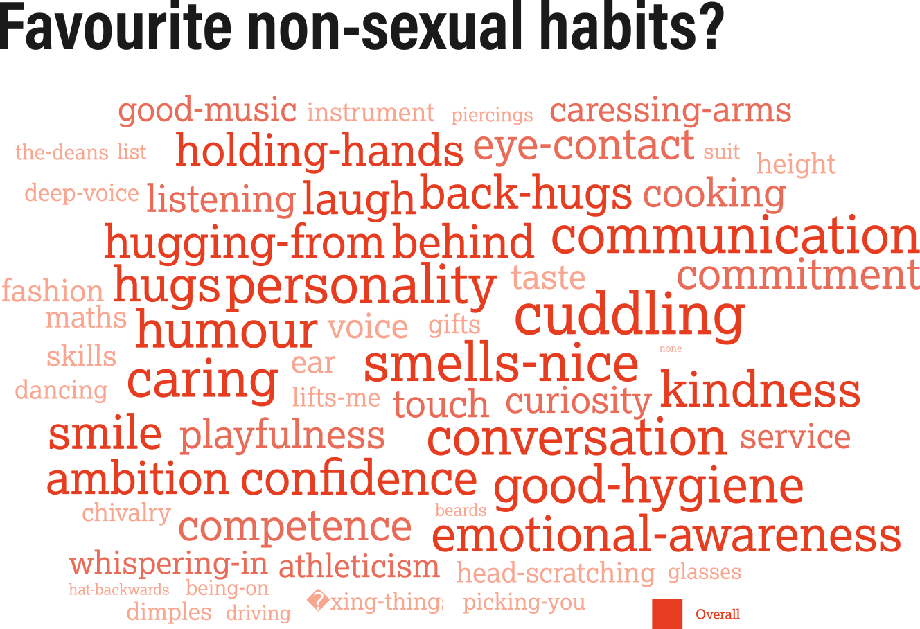 In this section, we like to share what the people at Imperial like and dislike, rather than what is a turn-on or a turn-off. Previous years did not consider that some students simply do not get turned on or off by something, a valid point made to include asexual peers.