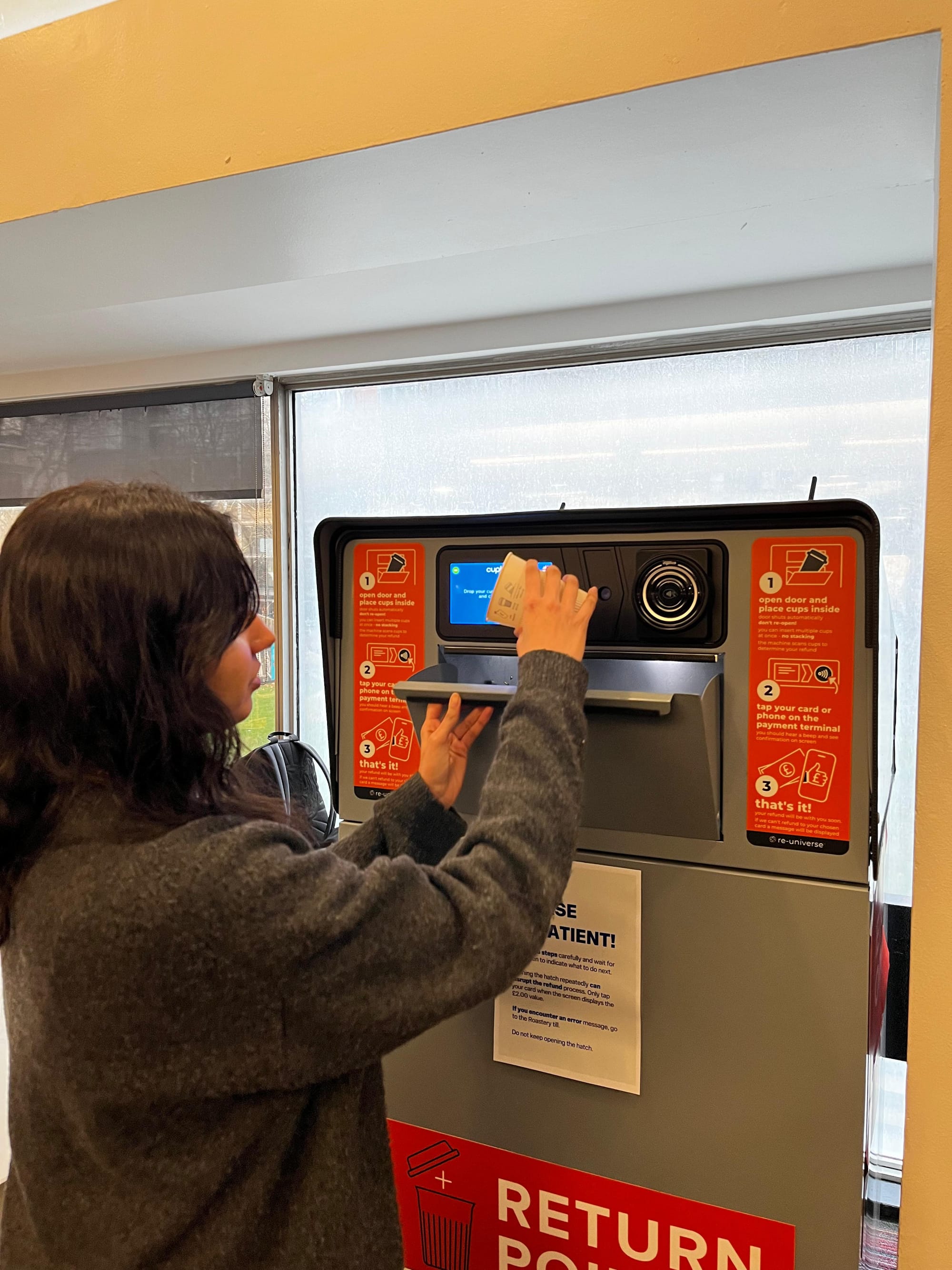 While buying your morning coffee at The Roastery, you probably wondered why you had to pay £2 extra. This additional cost is a deposit for your Re-Universe cup, which can be refunded by bringing it back to the return point within 7 days. The return point is right across from the Roastery, with clear instructions, and the process takes about one minute to complete. Simply return your cup and tap your card!