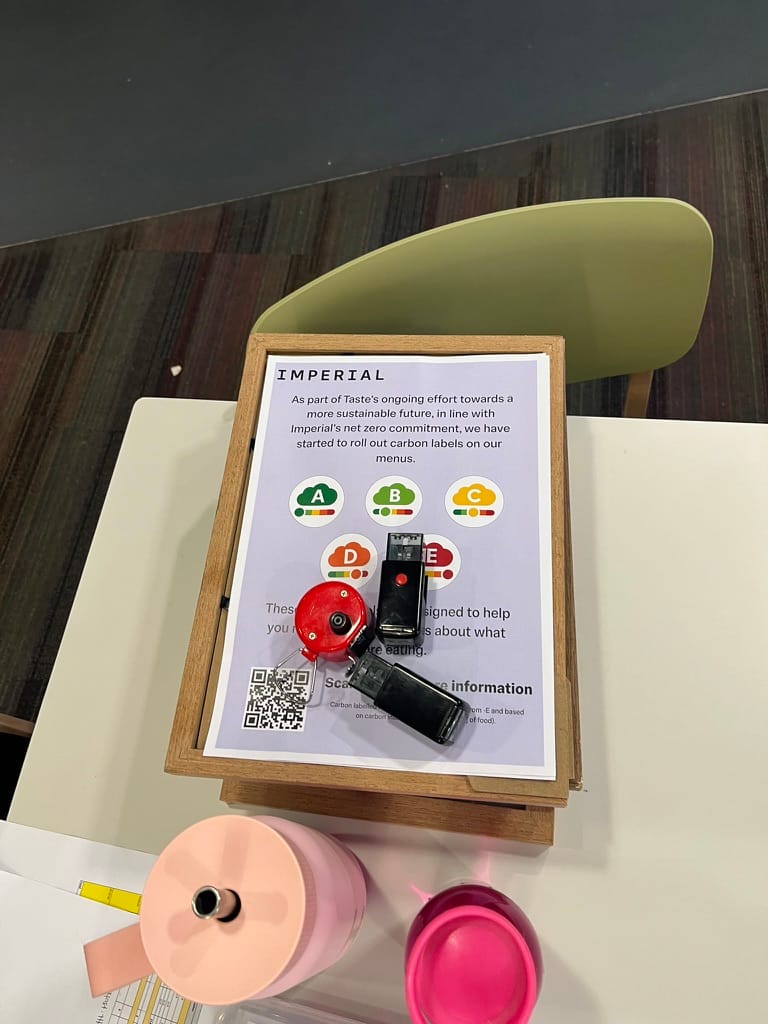 La Cantina in the Junior Common Room is already displaying the labels. The roll-out will continue with static menus, with the aim of having all menus carbon--labelled by the end of 2026.