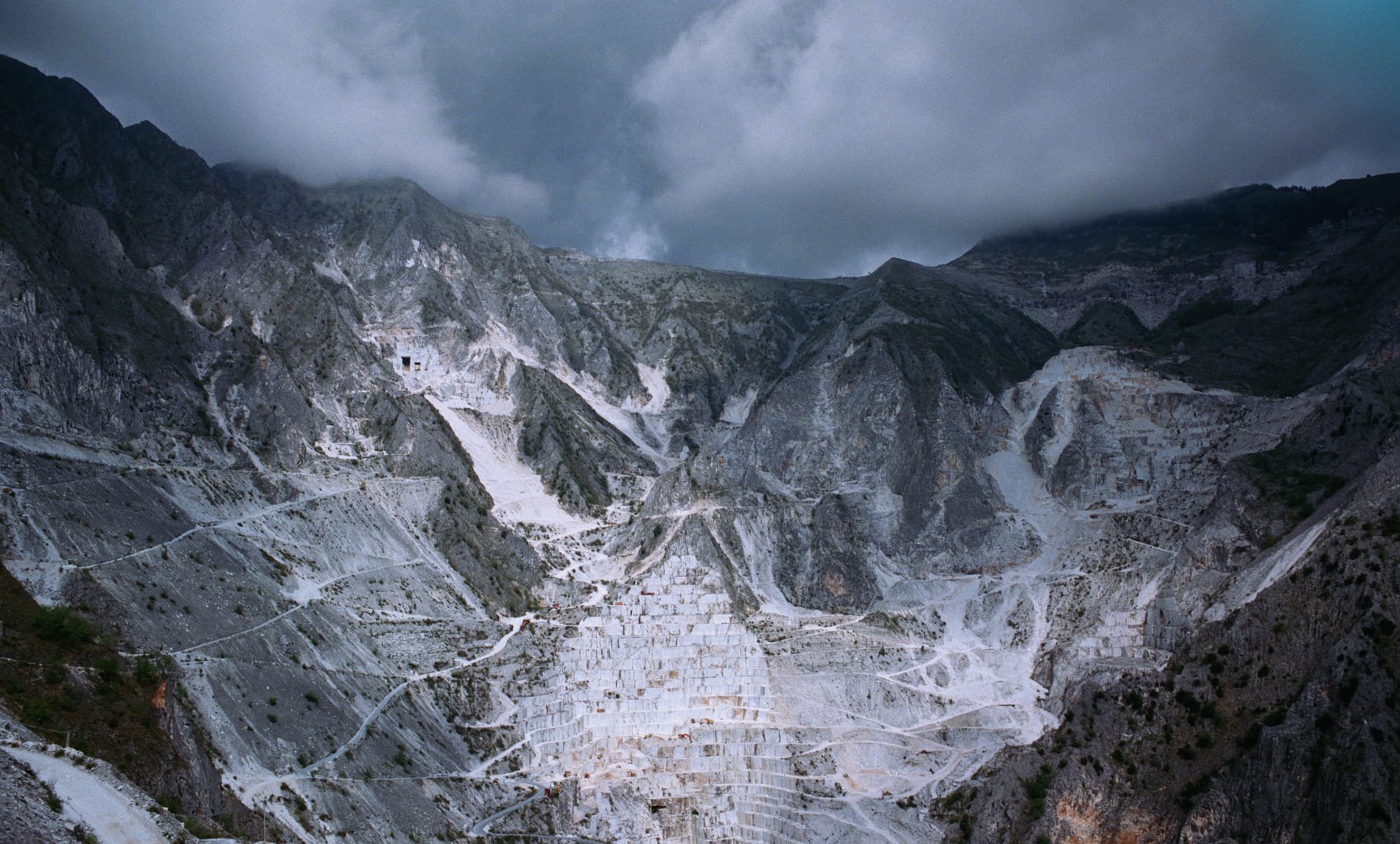When writing a long-form piece of text, it can be very easy to slip into a spiral of putting less and less effort in as you become more consumed by the desire to be done with it all. Likewise, one might expect that a film of this length would lead to an inconsistent, tapering quality in direction. This wasn’t present and I was regularly blown away by the sheer magnificence of shots present in the film. One challenge for Corbet must have been finding novel ways to shoot the building, which so much of the film hinges on. This was aided by the fascinating design of the Van Buren Institute, likely a result of Judy Becker’s production design. The building is a product of inspiration from decades of real-life brutalist architecture, with its concrete spires and liminal, water-filled lower chambers, with the barren chapel undoubtably the centrepiece. Despite the film’s brutalist namesake, the film is not afraid to have stunningly beautiful, colourful sequences. One of real standout nature to me was the trip Tóth and Harrison take to Italy to inspect the marble for the altarpiece. The ultrawide, epic shot of the quarry hangs on the screen for twenty seconds at least, which still wasn’t enough for me to absorb the magnitude of the setting. When the film shifts its focus to the single block of marble being chosen for the project, it takes the opposite approach and moves in close. The otherworldly, internal beauty of the slab and all of its prismatic colours take your breath away, all accompanied by soft, howling winds. When the characters describe themselves as having a spiritual experience with the marble, it’s more than a line. Corbet has truly imprinted God into your soul in that moment.
