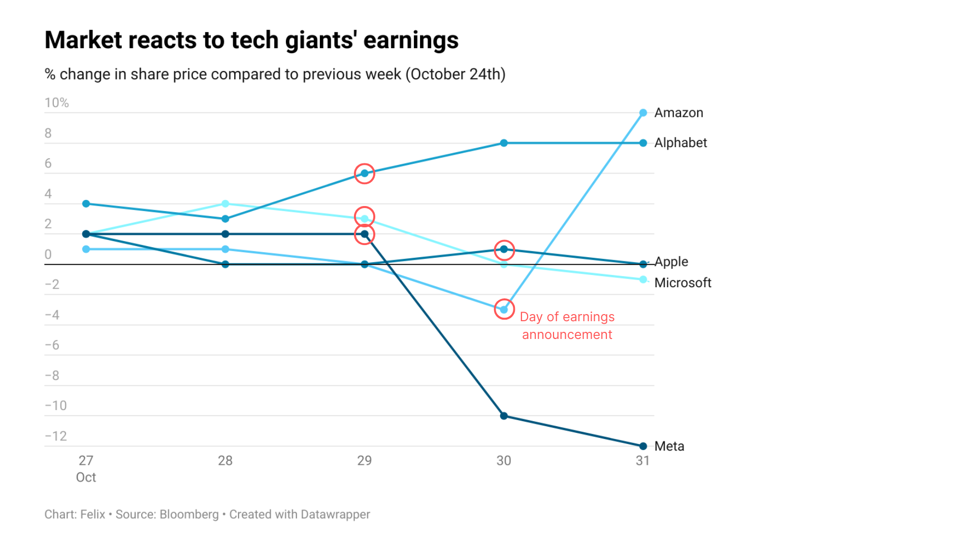 Chatter about the ominous form of a suspected “AI bubble” meant investors paid special attention to earnings reported by Microsoft, Alphabet, Meta, Amazon, and Apple on October 29th and 30th. Whilst all companies reported huge increases in AI-related investment, investors made it clear that they want to see proof that balance sheets can withstand this pressure. Meta’s shares fell 11% on Thursday, as it was revealed that its free cash flow numbers were struggling to keep up with its AI spending spree – the company is the only one out of the five that expects to see free cash flow fall in 2026. Meanwhile, Amazon’s stock jumped 10% following the impressive growth figures it posted for its cloud business, AWS.