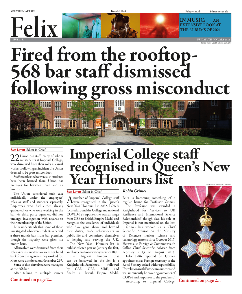 22 Union bar staff, many of whom are students at Imperial College, were dismissed from their roles following an incident deemed to be gross misconduct